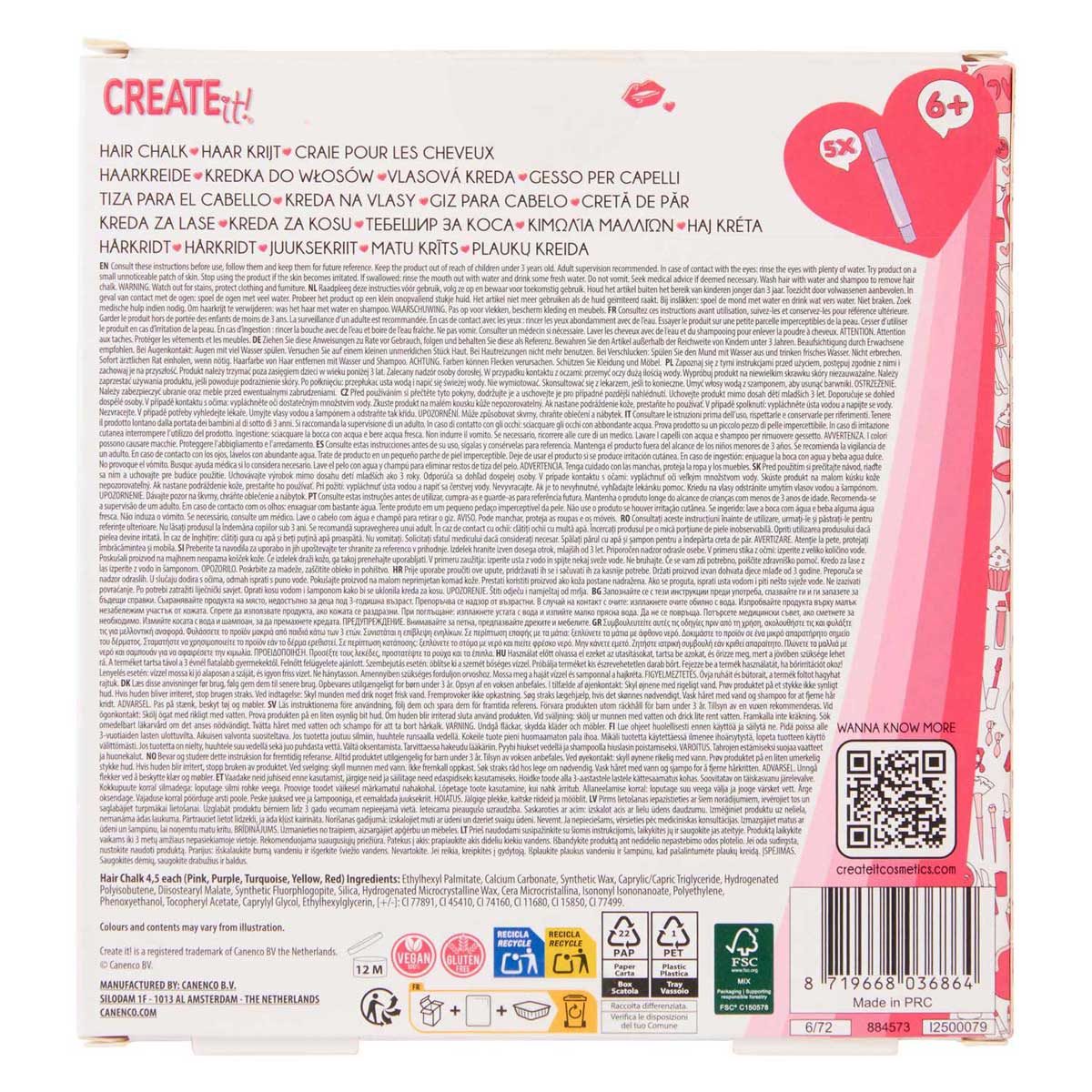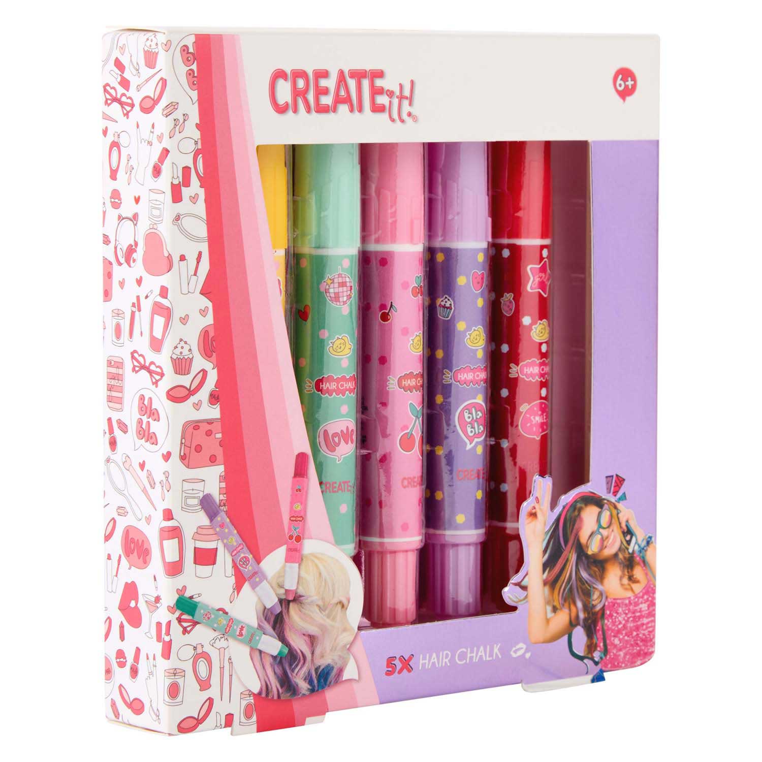 Create It! set kreda za kosu sadrži više nijansi namijenjenih privremenom bojanju kose. Kreda se jednostavno nanosi na pojedine pramenove, omogućujući kombiniranje boja i stvaranje razigranih frizura.