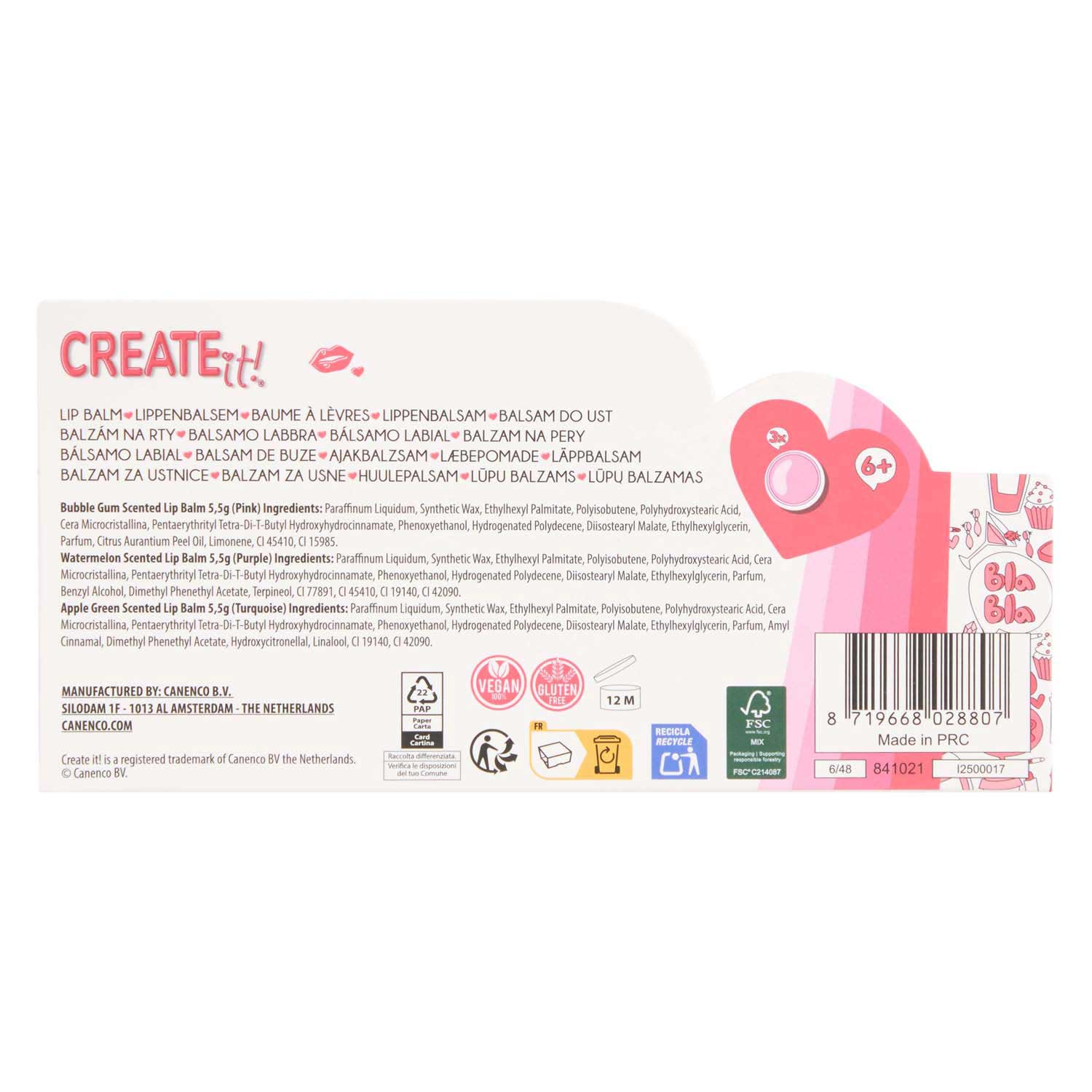 Create It! lip balm mushroom set sadrži tri balzama za usne s razigranim dizajnom. Balzami su namijenjeni osnovnoj njezi usana, a originalno pakiranje čini ih posebno privlačnima mlađoj publici.